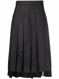 DARK GREY SUPER 120's TWILL BELOW KNEE PLEATED SKIRT 025 DARK GREY Wool or fine animal hair->Wool DARK GREY SUPER 120's TWILL BELOW KNEE PLEATED SKIRT from Thom Browne. Made in Italy Composition Wool 100% SIZE & FIT Model measurements Height 5 ft 10 in(1.78 m) Bust/Chest 30.7 in(78 cm) Hips 33.85 in(86 cm) Waist 22.44 in(57 cm)