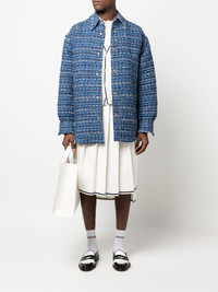 denim-tweed shirt jacket Thom Browne puts a twist on classic tweed with this shirt jacket, crafting it from denim for a modern and unexpected finish. Made in Italy Composition Outer: Polyamide 100%, Cotton 70%, Acrylic 15%, Wool 6%, Viscose 2% Lining: Cupro 100% SIZE & FIT Model measurements Height 6 ft 2 in(1.88 m) Bust/Chest 36.61 in(93 cm) Hips 35.82 in(91 cm) Waist 27.95 in(71 cm) FittingInformation This piece fits true to size. We recommend you get your regular size Cut for an oversized fit Made with a mid-weight non-stretch fabric