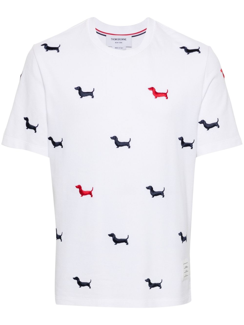 dog-embroidery T-shirt Highlights - White/multicolour - Pique weave - Dog embroidery - Crew neck - Short sleeves - Signature grosgrain side tabs - Logo tag - Signature grosgrain loop tab - High-low hem Made in Italy Composition Fabric 100% SIZE & FIT Model measurements Height 6 ft 1 in(1.86 m) Bust/Chest 37.4 in(95 cm) Hips 36.22 in(92 cm) Waist 29.52 in(75 cm) FittingInformation Designed for a relaxed fit, this piece allows for comfort and movement when worn Made from a midweight non-stretch fabric, this piece offers minimal elasticity when worn This piece fits true to size – take your usual size