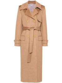 double-breasted coat Highlights - Brown - Brushed effect - Notched lapels - Epaulettes - Long sleeves - Buttoned cuffs - Two side flap pockets - Storm flap - English rear vents - Detachable waist belt - Multiple internal slip pockets - Full lining - Double-breasted button fastening Made in Italy Composition Outer: Camel Fur 100% Lining: Cupro 100% SIZE & FIT Model measurements Height 5 ft 11 in(1.8 m) Bust/Chest 32.67 in(83 cm) Hips 36.22 in(92 cm) Waist 24.4 in(62 cm) FittingInformation Designed for a slim fit that sits just away from the body offering a close yet comfortable fit The vented hem offers movement at the rear Made from a midweight non-stretch fabric This piece fits true to size – take your usual size