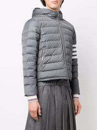 Downfall padded ski jacket grey/white padded design side stripe detailing classic hood front zip fastening long sleeves two side zip-fastening pockets elasticated cuffs straight hem Made in Italy Composition Filling: Feather Down 100% Outer: Polyester 100% SIZE & FIT FittingInformation This piece fits true to size. We recommend you get your regular size Cut for a loose fit Made with a mid-weight non-stretch fabric Washing instructions Read Manufacturer Guidelines