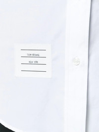 White Solid Poplin Stripe Grosgrain Placket Thigh Length Point Collar Shirtdress