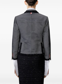 embroidered jacket Highlights - Black/white - Polka dot embroidery - Crochet trim - Signature grosgrain loop tab - Notched lapels - Front button fastening - Long sleeves - Chest welt pocket - Two front flap pockets - Straight hem Made in Italy Composition Outer: Polyamide 100%, Silk 100% Lining: Cupro 100%