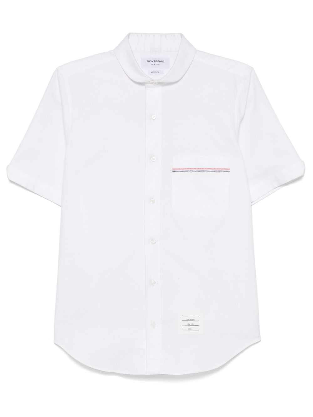 RWB-embroidery short-sleeves shirt Highlights - White - Front button fastening - Chest patch pocket - Pleat detailing - Curved hem Made in Italy Composition Cotton 100% SIZE & FIT Model measurements Height 6 ft 2 in(1.87 m) Bust/Chest 38.18 in(97 cm) Hips 36.61 in(93 cm) Waist 29.13 in(74 cm) FittingInformation Designed for a slim fit, offering a comfortable fit that sits just away from the body Made from a midweight non-stretch fabric Washing instructions Dry Clean Only