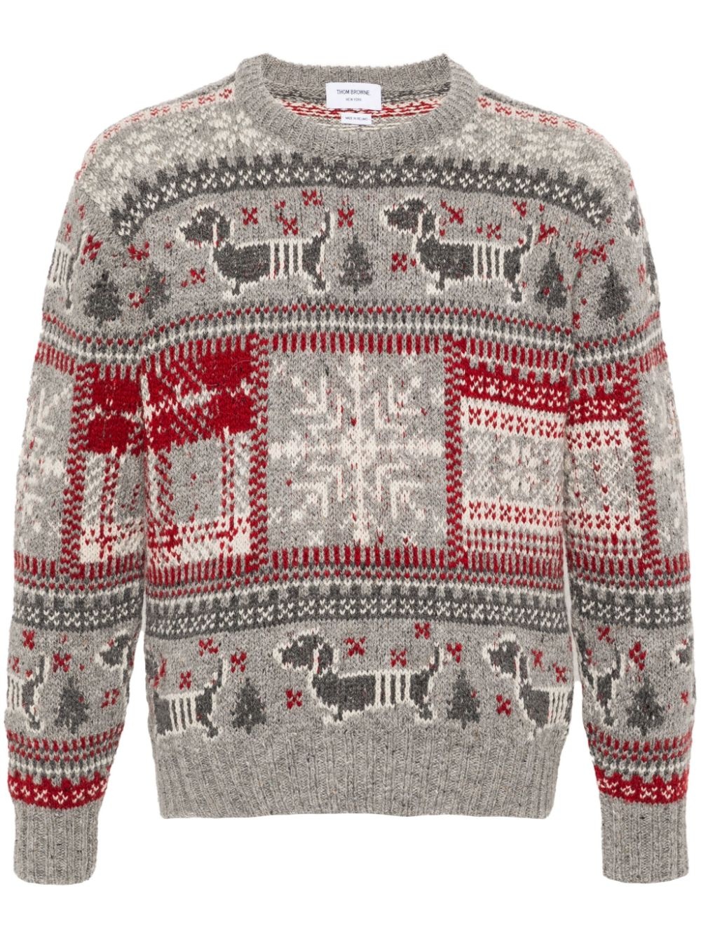 fair isle intarsia jumper Highlights - Light grey/multicolour - Merino wool-mohair blend - Knitted construction - Fair isle intarsia knit - Holiday hector motif - Ribbed crew neck - Long sleeves - Ribbed cuffs and hem Imported Composition Merino 70%, Mohair 30% SIZE & FIT Model measurements Height 6 ft 2 in(1.88 m) Bust/Chest 35.03 in(89 cm) Hips 35.82 in(91 cm) Waist 27.95 in(71 cm) FittingInformation Designed for a relaxed fit, this piece allows for comfort and movement when worn The ribbed hem offers a close, comfortable fit Made with a midweight knit, this piece offers some stretch This piece fits true to size – take your usual size
