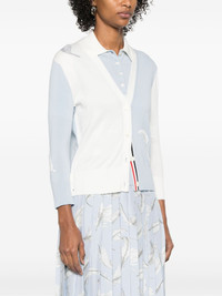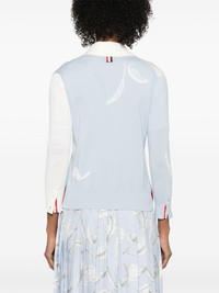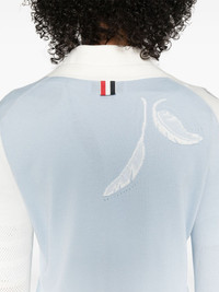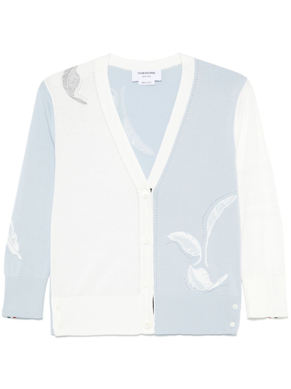 feather-intarsia cotton cardigan Highlights - Light blue - Front button fastening - V-neck - Three-quarter length sleeves - Signature grosgrain loop tab Made in Italy Composition Cotton 100% SIZE & FIT Model measurements Height 5 ft 11 in(1.8 m) Bust/Chest 31.49 in(80 cm) Hips 35.82 in(91 cm) Waist 24.8 in(63 cm) FittingInformation Designed for a slim fit that sits just away from the body offering a close yet comfortable fit Made with a midweight knit, this piece offers some stretch