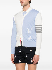 feather-intarsia cotton cardigan Highlights - Light blue - Front button fastening - Long sleeves - Two side patch pockets - Signature 4-bar stripe Made in Italy Composition Cotton 100% SIZE & FIT Model measurements Height 6 ft 2 in(1.87 m) Bust/Chest 37.79 in(96 cm) Hips 37.79 in(96 cm) Waist 30.31 in(77 cm) FittingInformation Designed for a relaxed fit, this piece allows for comfort and movement when worn The ribbed hem offers a close, comfortable fit
