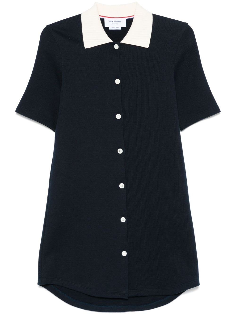 fine-ribbed mini dress Highlights - Navy blue - Front button fastening - Polo collar - Short sleeves Made in Italy Composition Cotton 100% SIZE & FIT Model measurements Height 5 ft 11 in(1.8 m) Bust/Chest 31.49 in(80 cm) Hips 35.82 in(91 cm) Waist 24.8 in(63 cm) FittingInformation Designed for a slim fit that sits just away from the body offering a close yet comfortable fit Made from a midweight non-stretch fabric, this piece offers minimal elasticity when worn Washing instructions Dry Clean Only