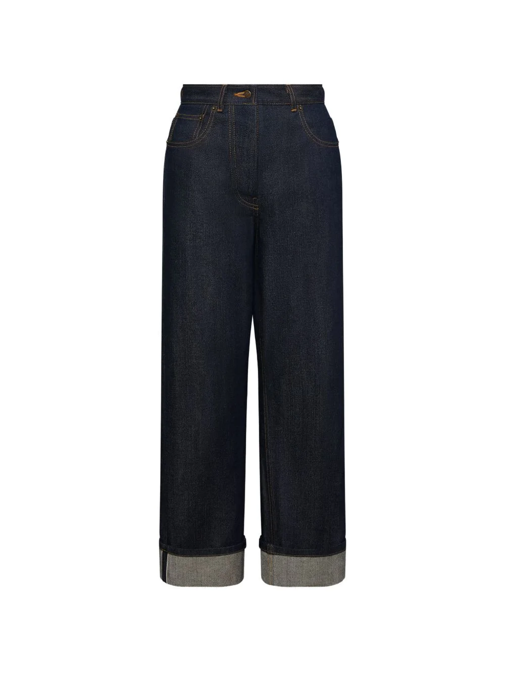 five-pocket cuffed jeans Highlights - Navy blue - Five pockets - Back tab - Belt loops Imported Composition Cotton 100% Washing instructions Read Manufacturer Guidelines