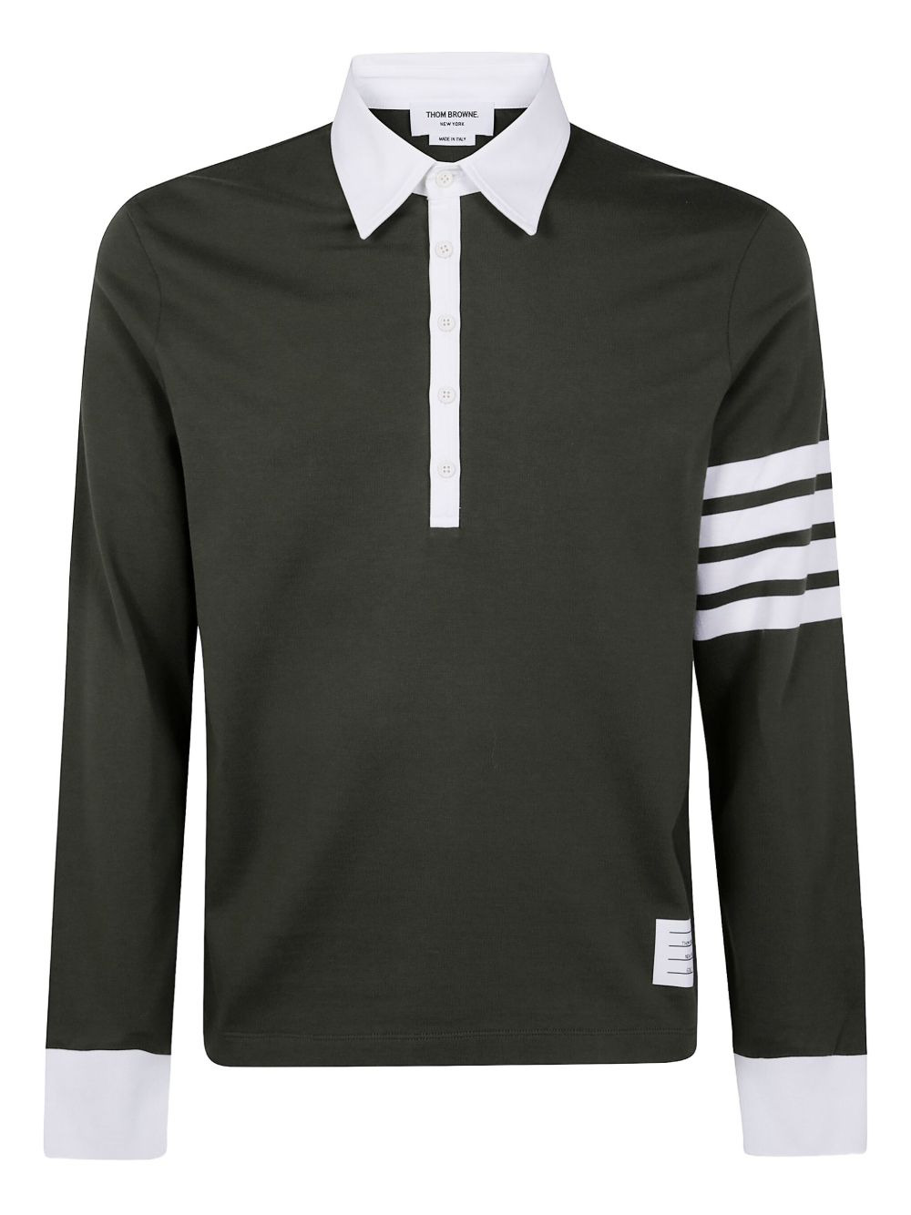 four-bar long-sleeve t-shirt Highlights - Green - Four bar stripe detail - Button placket - Long sleeves - Polo collar - Ribbed cuffs Made in Italy Composition Cotton 100% SIZE & FIT FittingInformation Designed for a relaxed fit, this polo shirt offers comfort and movement Made from a midweight non-stretch fabric, this piece offers minimal elasticity when worn Washing instructions Read Manufacturer Guidelines