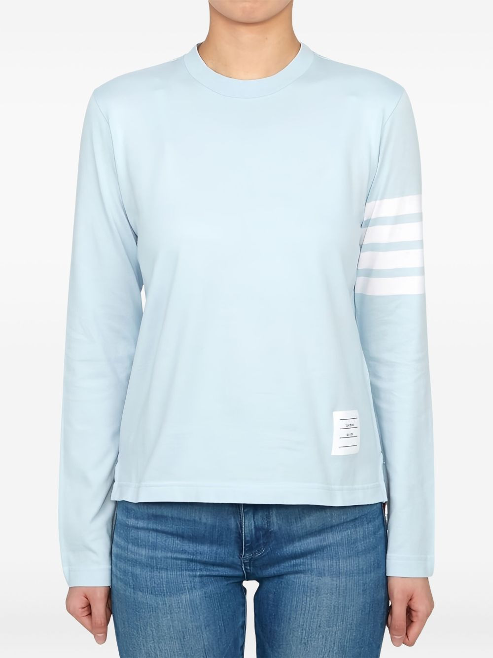 four-bar sleeve-detail sweater Highlights - Light blue - Long sleeves - Four-bar stripe detail - Crew neck - Logo label - Side slits Made in Italy Composition Cotton 100% Washing instructions Read Manufacturer Guidelines