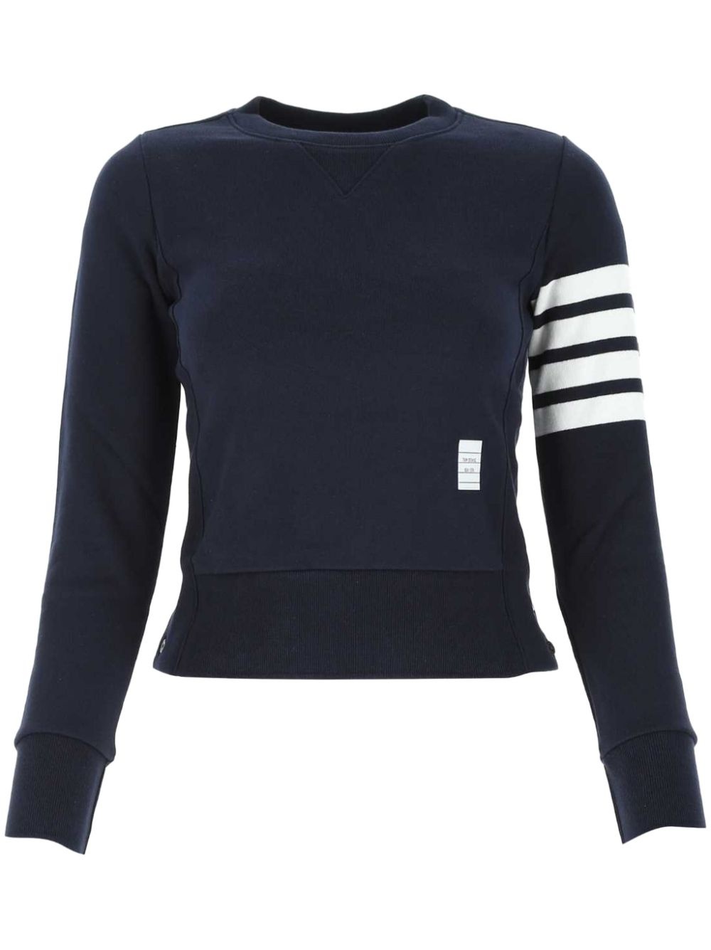 stripe-detail top Highlights - Prussian blue - Cotton - Signature four-bar stripe - Logo patch to the front - Crew neck - Long sleeves - Fitted-cuff sleeves - Straight hem Imported Composition Cotton 100% SIZE & FIT Measurement BUST 29.13 in(74 cm) LENGTH 19.68 in(50 cm) WAIST 24.4 in(62 cm) SLEEVE LENGTH 22.04 in(56 cm) Shoulder Width 11.41 in(29 cm) FittingInformation Designed for a slim fit that sits just away from the body offering a close yet comfortable fit Made from a midweight non-stretch fabric, this piece offers minimal elasticity when worn Washing instructions Hand Wash