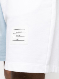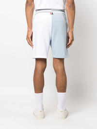 Funmix colour-block shorts Embracing Thom Browne's penchant for panelled creations, these Funmix shorts arrive in a colour-block design. A drawstring waistband sets a casual feel, while the soft colourways diver from the label's sober palettes. Highlights - White/light blue - Cotton - Colour-block design - Drawstring fastening waist - Two side slit pockets - Above-knee length Made in Italy Composition Outer: Cotton 100% Cotton 97%, Elastane 3% SIZE & FIT Model measurements Height 6 ft 2 in(1.89 m) Bust/Chest 37.4 in(95 cm) Hips 37.4 in(95 cm) Waist 29.52 in(75 cm) FittingInformation Designed for relaxed fit, offering a comfortable loose fit over the leg Adjust this piece’s waistband to your preference using the drawstring Made from a midweight non-stretch fabric, this piece offers minimal elasticity when worn This piece fits true to size – take your usual size Washing instructions Dry Clean Only