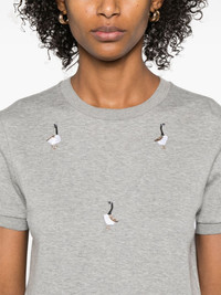 geese-embroidered cotton T-shirt Highlights - Light grey - Ribbed cuffs and hem - Signature 4-bar tab - Logo patch to the front Made in Italy Composition Cotton 100% SIZE & FIT Model measurements Height 5 ft 11 in(1.8 m) Bust/Chest 31.49 in(80 cm) Hips 35.82 in(91 cm) Waist 24.8 in(63 cm) FittingInformation Designed for a relaxed fit, this piece allows for comfort and movement when worn Made from a midweight stretch fabric, this piece offers elasticity and flexibility when worn Washing instructions Dry Clean Only