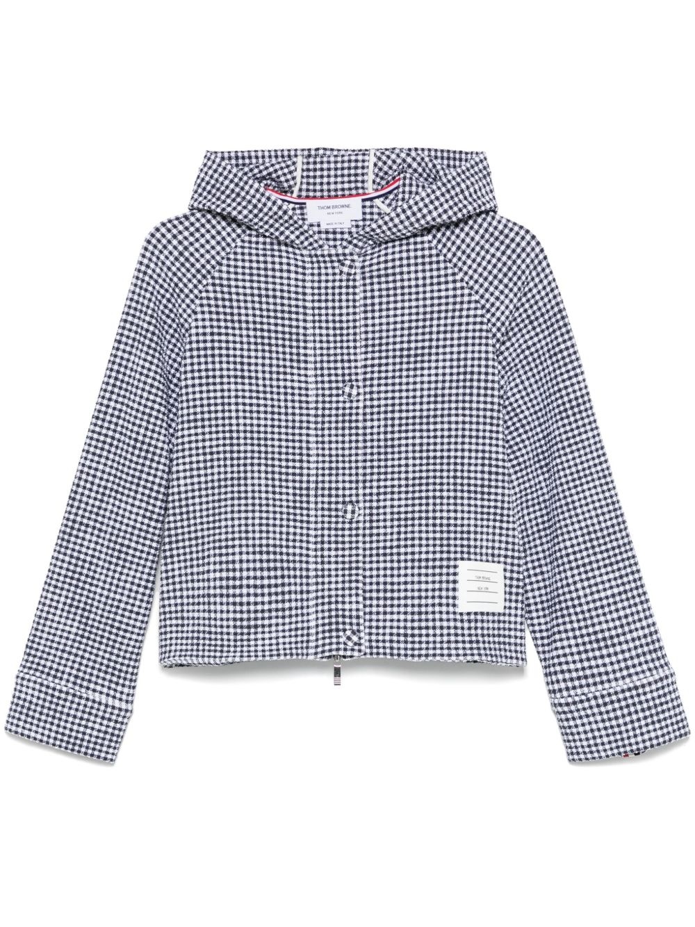 gingham-check tweed jacket Highlights - Navy blue - Front button and zip fastening - Classic hood - Long sleeves - Buttoned cuffs Made in Italy Composition Cotton 100% SIZE & FIT Model measurements Height 5 ft 9 in(1.76 m) Bust/Chest 32.28 in(82 cm) Hips 35.43 in(90 cm) Waist 25.19 in(64 cm) FittingInformation Designed for a relaxed fit, this piece allows for comfort and movement when worn