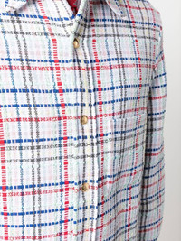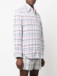 gingham check tweed overshirt Made in Italy from a blend of cotton and wool and worked into a tweed texture, this buttoned shirt jacket from Thom Browne is elevated with a colourful gingham pattern throughout - a nod to the brand's playful take on timeless silhouettes for SS23. Made in Italy Composition Outer: Acrylic 38%, Polyester 26%, Cotton 13%, Viscose 13%, Wool 5%, Polyamide 4%, Silk 1% Lining: Cupro 100% SIZE & FIT Model measurements Height 6 ft 2 in(1.88 m) Bust/Chest 36.61 in(93 cm) Hips 35.82 in(91 cm) Waist 27.95 in(71 cm) Measurement CHEST 44.09 in(112 cm) SLEEVE LENGTH 33.46 in(85 cm) LENGTH 29.13 in(74 cm) WAIST 42.91 in(109 cm) FittingInformation This piece fits true to size. We recommend you get your regular size Cut for a loose fit Made with a mid-weight non-stretch fabric