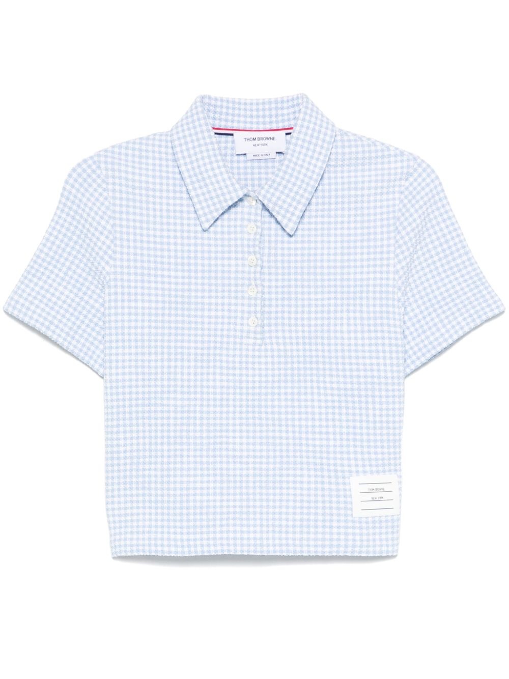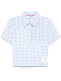 gingham-check tweed polo top Highlights - Light blue - Front button placket - Side slits - Signature 4-bar tab - Logo patch to the front Made in Italy Composition Fabric 100% SIZE & FIT Model measurements Height 5 ft 9 in(1.76 m) Bust/Chest 32.28 in(82 cm) Hips 35.43 in(90 cm) Waist 25.19 in(64 cm) FittingInformation Designed for a relaxed fit, this piece allows for comfort and movement when worn