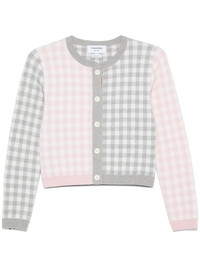 gingham-check wool cardigan
