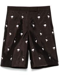 Goose-embroidered wide-leg shorts Highlights - Cedar brown - Concealed front button, hook and zip fastening - Belt loops - Two side slit pockets - Two rear patch pockets Made in Italy Composition Outer: Polyester 100%, Wool 58%, Silk 42% Lining: Cupro 100% SIZE & FIT Model measurements Height 5 ft 11 in(1.8 m) Bust/Chest 31.49 in(80 cm) Hips 35.82 in(91 cm) Waist 24.8 in(63 cm) FittingInformation Designed for a loose fit, offering comfort and movement when worn Made from a midweight non-stretch fabric Washing instructions Dry Clean Only