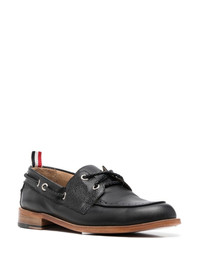 grosgrain-loop trim lace-up shoes Featuring the signature grosgrain loop tab at the heel, this pair of shoes are instantly recognisable as Thom Browne. Paired with a classic round-toe silhouette, front lace-up fastening and a tonal colourway, the smart, suit-inspired style of the brand is showcased. Made in Italy Composition Outer: Calf Leather 100% Lining: Calf Leather 100% Sole: Calf Leather 100% SIZE & FIT Model measurements Height 6 ft 1 in(1.85 m) Bust/Chest 35.43 in(90 cm) Hips 35.82 in(91 cm) Waist 27.55 in(70 cm) Measurement HEEL 1.18 in(3 cm) Sole height 0.39 in(1 cm)