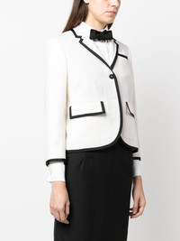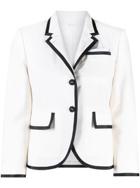 grosgrain ribbon-trim blazer Highlights - White/black - Wool - Twill weave - Grosgrain ribbon trim - Signature grosgrain loop tab - Notched lapels - Front button fastening - Long sleeves - Buttoned cuffs - Chest welt pocket - Two side flap pockets - English rear vents Made in Italy Composition Wool 100% SIZE & FIT Model measurements Height 5 ft 11 in(1.8 m) Bust/Chest 31.49 in(80 cm) Hips 36.22 in(92 cm) Waist 25.59 in(65 cm) FittingInformation This piece fits true to size. We recommend you get your regular size Cut for a slim fit Made with a mid-weight non-stretch fabric Washing instructions Dry Clean Only