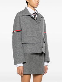 grosgrain-stripe brushed jacket Highlights - Medium grey - Boiled wool-cashmere blend - Brushed effect - Grosgrain ribbon trim - Signature grosgrain loop tab - Spread collar - Concealed front fastening - Bell sleeves - Two front flap pockets - Straight hem Made in Italy Composition Wool 90%, Cashmere 10% SIZE & FIT Model measurements Height 5 ft 9 in(1.76 m) Bust/Chest 31.88 in(81 cm) Hips 35.43 in(90 cm) Waist 24.8 in(63 cm) FittingInformation Designed for a relaxed fit, this piece allows for comfort and movement when worn Made from a midweight non-stretch fabric This piece fits true to size – take your usual size