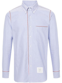 grosgrain-trim cotton shirt A classic with a Thom Browne twist, this flannel shirt is enhanced with the famous brand tag at the front and a grosgrain tab on the back. It's crafted from soft cotton, in a light blue hue. Highlights - Blue/white - Cotton canvas - Signature grosgrain contrasting trim - Rwb stripe - Logo patch to the front - Pointed flat collar - Front button fastening - Long sleeves with buttoned cuffs - Chest patch pocket - Hem gusset - Curved hem Made in Italy Composition Cotton 100% Lining: RDS Product Name: BLACK ORCHID EDP Division: TF (TOM FORD BEAUTY) ALCOHOL DENAT. 100% SIZE & FIT Model measurements Height 6 ft 2 in(1.87 m) Bust/Chest 38.18 in(97 cm) Hips 36.61 in(93 cm) Waist 29.13 in(74 cm) Measurement CHEST 42 in(106.7 cm) LENGTH 29.48 in(74.9 cm) WAIST 42 in(106.7 cm) SLEEVE LENGTH 25.98 in(66 cm) Shoulder Width 17.51 in(44.5 cm) FittingInformation Designed for a regular fit, allowing for a comfortably loose fit throughout the body Made from a midweight fabric This piece fits true to size – take your usual size