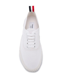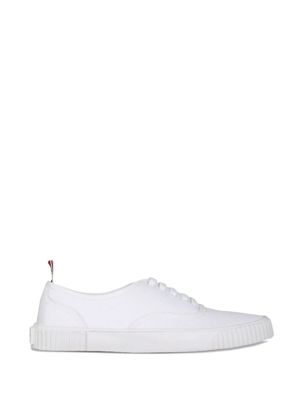 Heritage lace-up sneakers Some things are just perfect together – and you, your favourite jeans and the Heritage sneakers from Thom Browne are an impeccable example of that. Constructed from soft cotton, this pair sits on a flat rubber sole that will ensure all-day comfort. It’s just meant to be. Highlights - White - Cotton - Branded insole - Rubber sole - Front lace-up fastening - Round toe - Pull-tab at the heel Imported Composition Outer: Cotton 100% Lining: Fabric 100% Sole: Rubber 100% SIZE & FIT Measurement Sole height 0.98 in(2.5 cm)