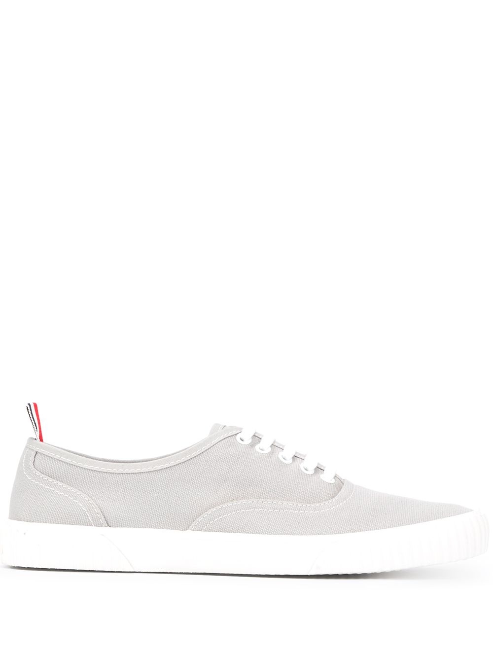 Heritage canvas sneakers Keep it classic in Thom Browne's Heritage sneakers. Featuring a round toe, front lace-up fastening and pull-tab at the heel. Don't complicate what's simple. Highlights - Grey - Cotton - Round toe - Front lace-up fastening - Flat rubber sole - Pull-tab at the heel Imported Composition Cotton 70%, Rubber 30% SIZE & FIT FittingInformation This piece fits small – take one size up Measurement Sole height 0.98 in(2.5 cm)