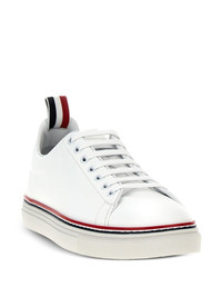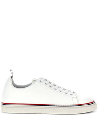 Heritage low-top sneakers Kick back and relax in a pair of these Heritage canvas sneakers from Thom Browne. Designed with a lace-up fastening, this laid-back pair have been detailed with a signature grosgrain loop tab at the heel. Cool, casual and care-free. Made in Italy Composition Outer: Calf Leather 100% Sole: Rubber 100% Lining: Calf Leather 100% SIZE & FIT FittingInformation This piece fits small – take one size up