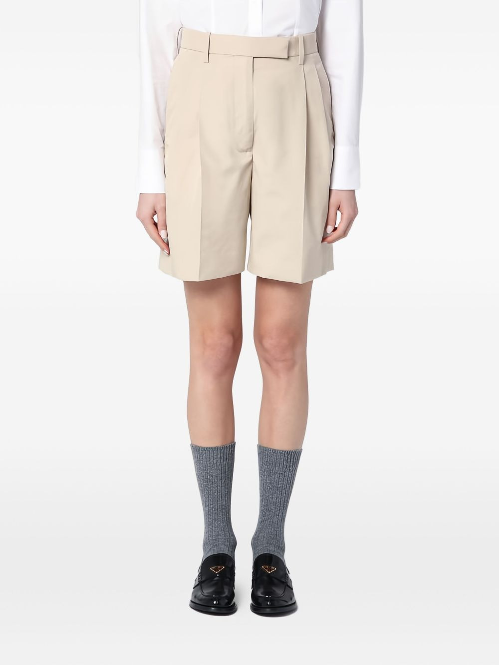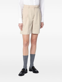 high-waist pleated shorts Highlights - Beige - Concealed fly and button fastening - Two side slit pockets - Two rear button-fastening jetted pockets - Box-pleat detail Made in Italy Composition Wool 80%, Polyamide 18%, Elastane 2% SIZE & FIT FittingInformation Designed for a loose fit, offering comfort and movement when worn Made from a midweight non-stretch fabric