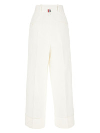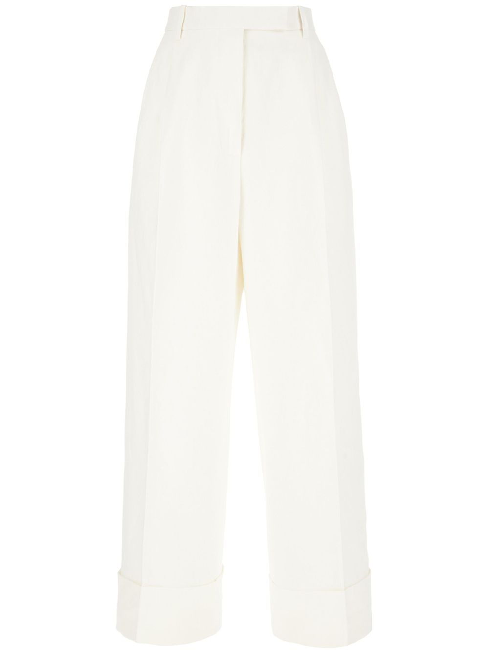 high-waisted trousers Highlights - White - Concealed front fastening - Two side slit pockets - Two rear button-fastening jetted pockets - Turn-up hem Made in Italy Composition Outer: Cotton 55%, Linen/Flax 45% Lining: Cupro 100% SIZE & FIT Measurement BACK RISE 11.02 in(28 cm) HIPS 39.37 in(100 cm) WAIST 27.55 in(70 cm)