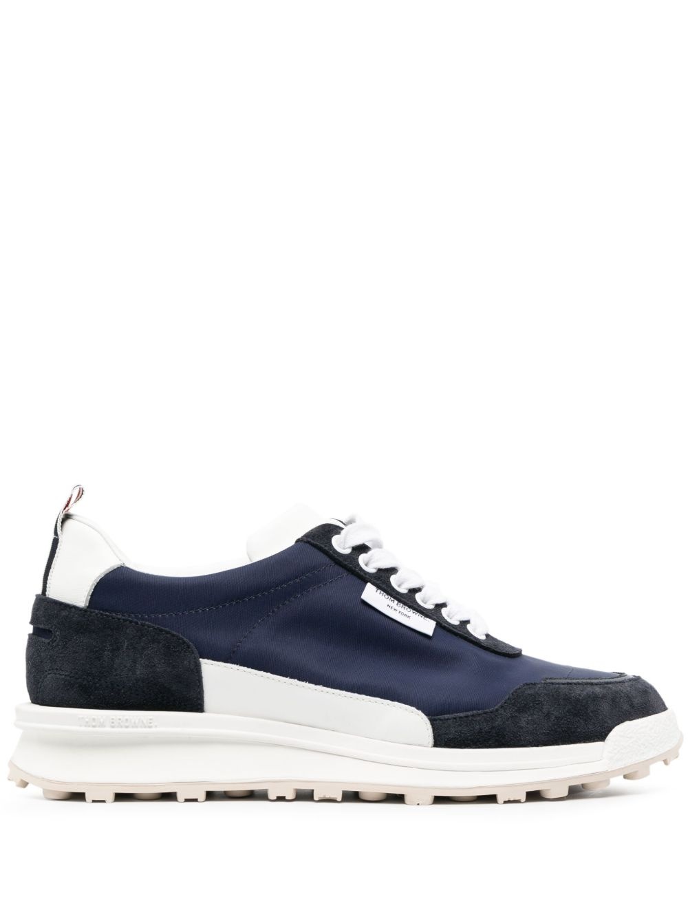 lace-up 40mm suede sneakers Highlights - Blue/white - Calf leather/calf suede - Panelled design - Front lace-up fastening - Logo patch to the front - Round toe - Signature grosgrain loop tab - Rwb stripe - Low wedge heel - Rubber lug sole Made in Italy Composition Leather 100% SIZE & FIT Measurement HEEL 1.1 in(2.8 cm) Sole height 0.59 in(1.5 cm)