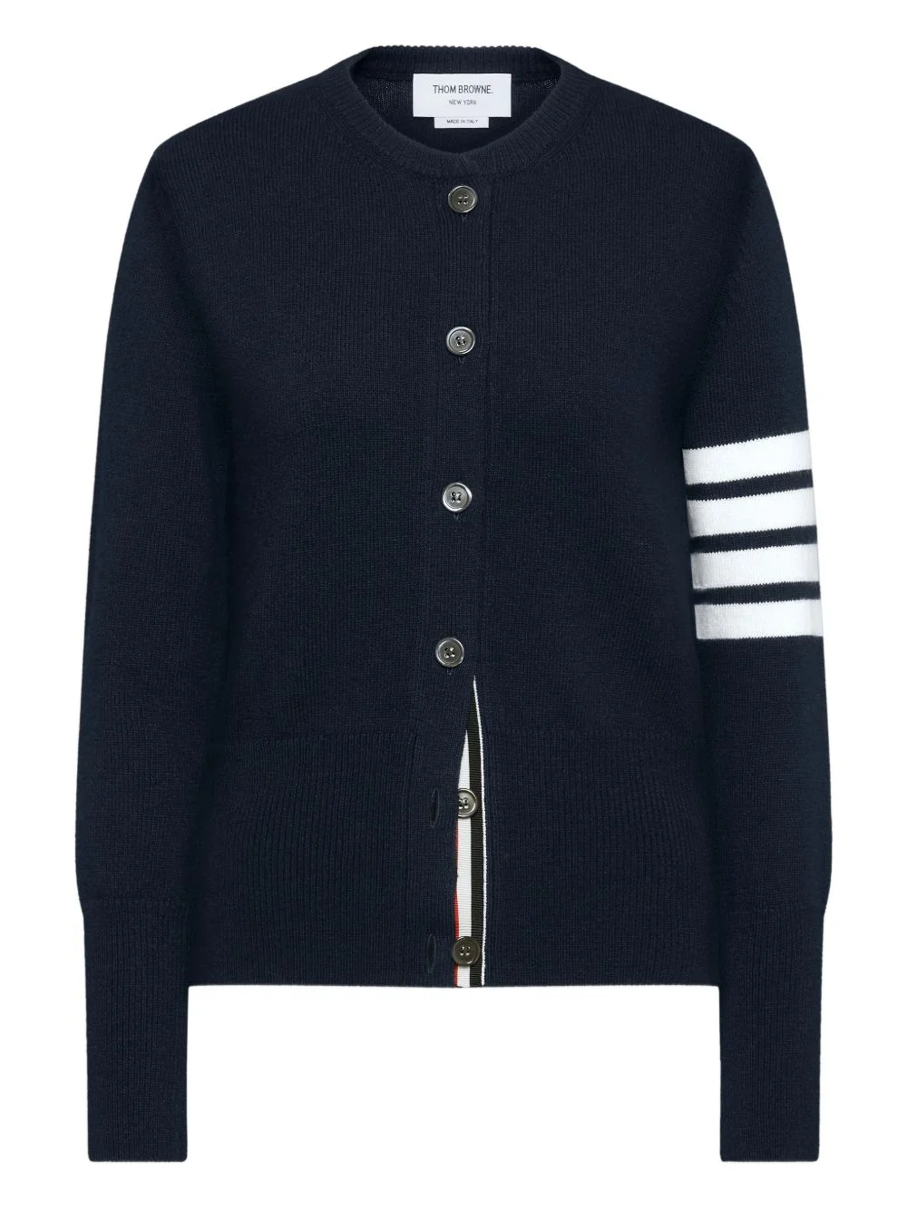 Intarsia 4-Bar intarsia cardigan Highlights - Navy blue - Wool - Horse intarsia - 4-bar stripe - Button fastening - Buttoned cuffs Made in Italy Composition Virgin Wool 100% Washing instructions Read Manufacturer Guidelines