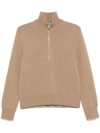 intarsia half-zip sweater Highlights - Sand brown - Buttoned cuffs - Rwb stripe - Embroidered motif - High neck Made in Italy Composition Virgin Wool 100% SIZE & FIT Model measurements Height 6 ft 2 in(1.87 m) Bust/Chest 37.79 in(96 cm) Hips 37.79 in(96 cm) Waist 30.31 in(77 cm) FittingInformation Designed for a relaxed fit, this piece allows for comfort and movement when worn The ribbed hem offers a close, comfortable fit Washing instructions Dry Clean Only