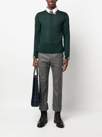 jersey knit crew-neck pullover green virgin wool jersey knit signature grosgrain loop tab side button fastening long sleeves buttoned-cuff sleeves straight hem Made in Italy Composition Virgin Wool 99%, Polyamide 1% SIZE & FIT Model measurements Height 6 ft 0 in(1.84 m) Bust/Chest 36.22 in(92 cm) Hips 35.43 in(90 cm) Waist 26.77 in(68 cm) FittingInformation Designed for a slim fit, offering a comfortable fit that sits just away from the body Made with a lightweight knit, this piece offers some stretch This piece fits true to size – take your usual size Washing instructions Hand Wash