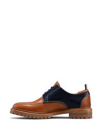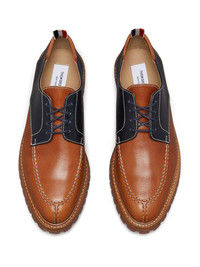 leather Derby shoes Highlights - Camel brown/navy blue - Calf leather - Signature grosgrain loop tab - Contrast stitching - Colour-block panelled design - Almond toe - Front lace-up fastening - Branded leather insole - Rubber lug sole Made in Italy Composition Outer: Calf Leather 100% Sole: Rubber 100% Lining: Calf Leather 100%