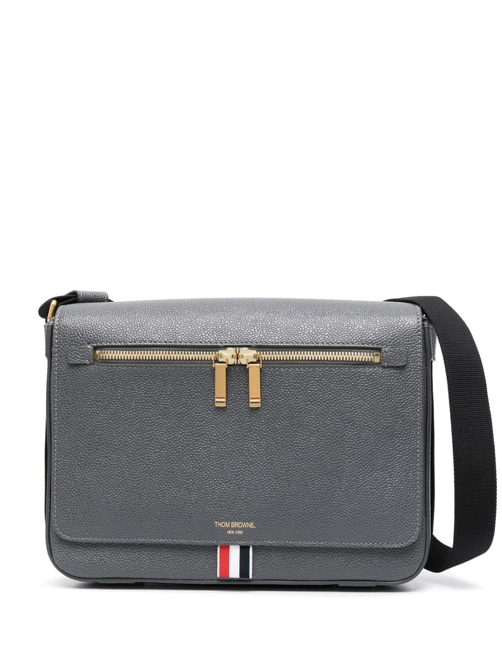 logo-lettering leather messenger bag dark grey calf leather pebbled texture gold-tone hardware gold-tone logo lettering foldover top with magnetic fastening adjustable shoulder strap main compartment internal logo patch front zip-fastening compartment Made in Italy Composition Outer: Calf Leather 100% SIZE & FIT Model measurements Height 6 ft 0 in(1.84 m) Bust/Chest 36.22 in(92 cm) Hips 35.43 in(90 cm) Waist 26.77 in(68 cm) Measurement DEPTH 2.36 in(6 cm) HEIGHT 7.87 in(20 cm) STRAP 21.65 in(55 cm) WIDTH 10.23 in(26 cm)