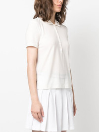 logo-patch detail polo top natural white cotton logo patch to the front polo collar front button placket short sleeves Made in Italy Composition Cotton 100% SIZE & FIT Model measurements Height 5 ft 10 in(1.79 m) Bust/Chest 32.67 in(83 cm) Hips 34.25 in(87 cm) Waist 24.4 in(62 cm) FittingInformation This piece fits true to size. We recommend you get your regular size Cut for a relaxed fit Made with a lightweight fabric Washing instructions Dry Clean Only