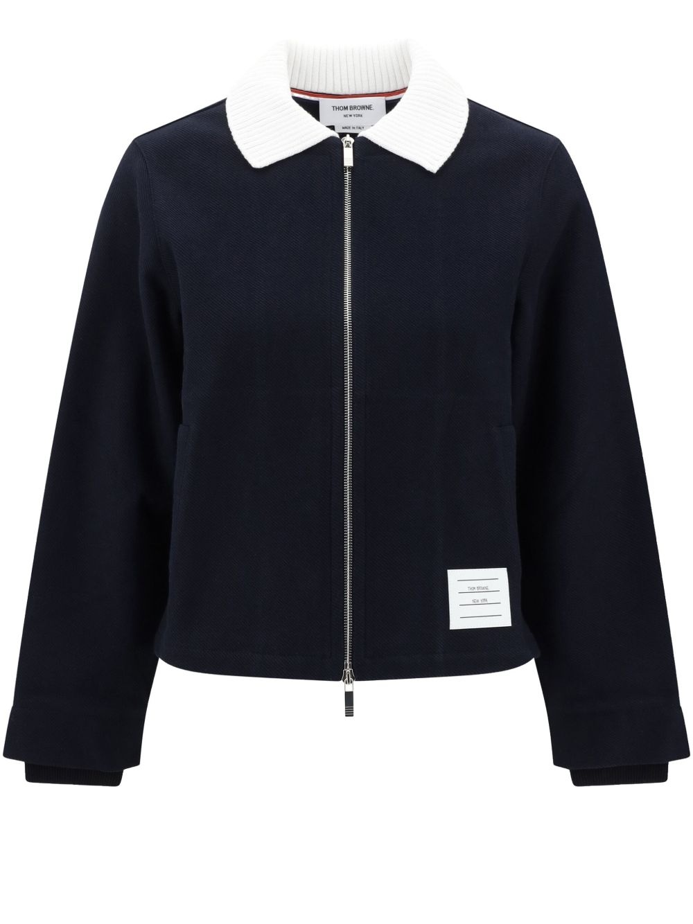 logo patch jacket Highlights - Navy blue - Front zip fastening - Contrasting collar - Two side slit pockets - Logo patch to the front Made in Italy Composition Cotton 100% Washing instructions Read Manufacturer Guidelines