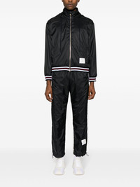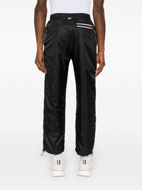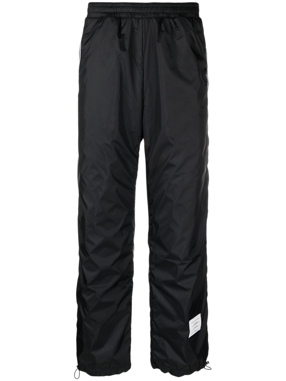 logo-patch sheer-ripstop track pants Highlights - Navy blue - Ripstop texture - Stripe knit panelling - Elasticated waistband - Two side welt pockets - Logo patch to the front - Rear welt pocket - Signature grosgrain loop tab - Straight leg - Toggle fastening at the ankles - Mesh lining Made in Italy Composition Outer: Polyamide 100% Lining: Cotton 97%, Elastane 3% SIZE & FIT Model measurements Height 6 ft 2 in(1.88 m) Bust/Chest 36.61 in(93 cm) Hips 35.82 in(91 cm) Waist 27.95 in(71 cm) Measurement FRONT RISE 12.2 in(31 cm) INSIDE LEG 27.95 in(71 cm) HIPS 42.51 in(108 cm)