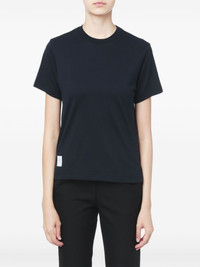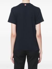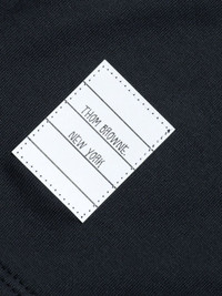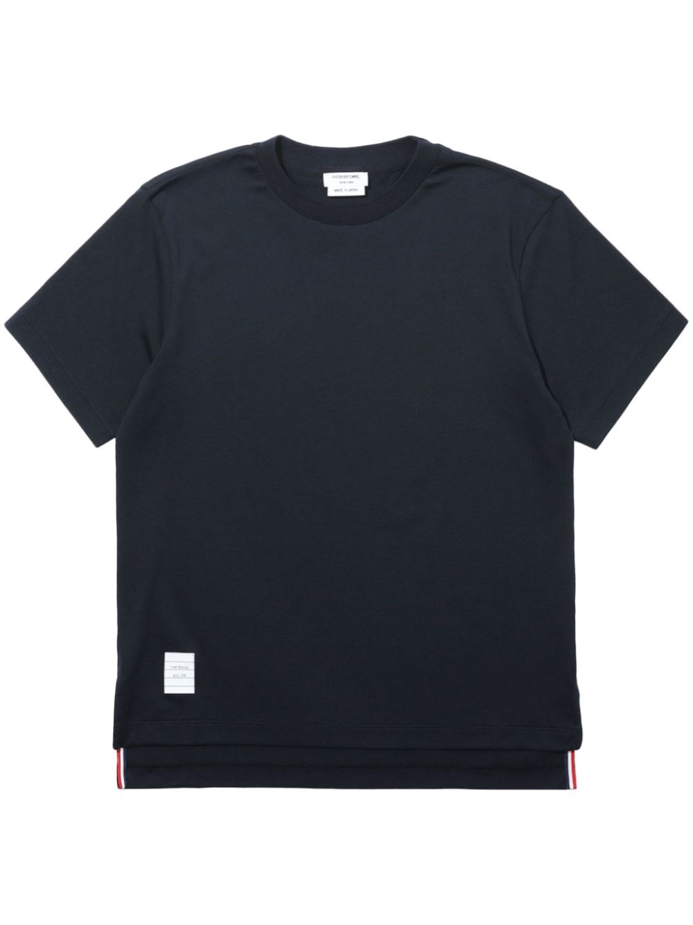 Slide Slits Relaxed Navy Tee Do you prefer a more classic look? So does this soft navy T-shirt from Thom Browne. It seems that you two are a perfect match. Highlights - Navy - Cotton - Round neck - Signature grosgrain loop tab - Short sleeves - Logo patch to the front Made in Italy Composition Cotton 100% SIZE & FIT Model measurements Height 5 ft 10 in(1.77 m) Bust/Chest 32.28 in(82 cm) Hips 35.82 in(91 cm) Waist 24.8 in(63 cm) Measurement BUST 31.49 in(80 cm) LENGTH 21.65 in(55 cm) WAIST 30.7 in(78 cm) SLEEVE LENGTH 3.54 in(9 cm) Shoulder Width 13.77 in(35 cm) Washing instructions Dry Clean Only