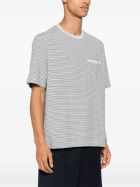 logo-patch striped T-shirt Highlights - Blue/white - Cotton - Soft jersey - Horizontal stripe pattern - Logo patch to the front - Signature 3-stripes logo to the rear - Crew neck - Drop shoulder - Short sleeves - Short side slits - Chest patch pocket - High-low hem - Unlined Made in Italy Composition Cotton 100% SIZE & FIT Model measurements Height 6 ft 2 in(1.87 m) Bust/Chest 38.18 in(97 cm) Hips 36.61 in(93 cm) Waist 29.13 in(74 cm) Measurement CHEST 51.18 in(130 cm) SLEEVE LENGTH 22.04 in(56 cm) FittingInformation Designed to be unstructured, offering a loose fit throughout Made from a midweight non-stretch fabric, this piece offers minimal elasticity when worn This piece fits true to size – take your usual size Washing instructions Hand Wash