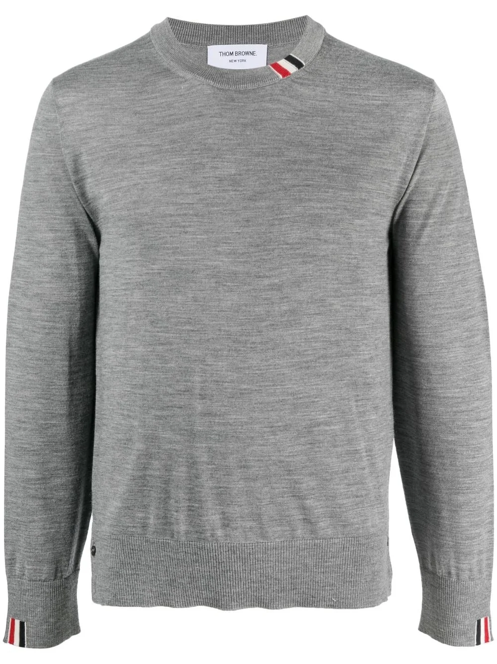 logo-patch wool sweatshirt Crafted from luxurious virgin wool, this understated sweatshirt by Thom Brown is adorned with the American brand's recognisable tri-colour red, white, and blue grosgrain patch. Highlights - Grey - Virgin wool - Crew neck - Long sleeves - Logo patch at the sleeve - Logo patch to the rear - Straight hem Made in Italy Composition Virgin Wool 99%, Polyamide 1% SIZE & FIT Model measurements Height 6 ft 1 in(1.85 m) Bust/Chest 35.43 in(90 cm) Hips 35.82 in(91 cm) Waist 27.55 in(70 cm) FittingInformation Designed for a slim fit, offering a comfortable fit that sits just away from the body Made with a lightweight knit, this piece offers some stretch This piece fits true to size – take your usual size Measurement CHEST 39.01 in(99.1 cm) SLEEVE LENGTH 24.48 in(62.2 cm) Shoulder Width 16.49 in(41.9 cm) LENGTH 24.48 in(62.2 cm) WAIST 35 in(88.9 cm)