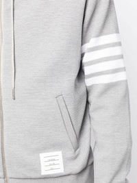 logo-patch zip-up hoodie Cut from cotton, this finely ribbed hoodie from Thom Browne is typified by the ubiquitous 4-Bar stripe that envelopes the sleeve. The relaxed silhouette is finished with a logo patch. Highlights - Light grey - Cotton - Fine ribbed - Logo patch to the side - Side stripe detailing - Drawstring hood - Front zip fastening - Two side slit pockets - Straight hem Made in Italy Composition Cotton 100% SIZE & FIT Model measurements Height 6 ft 2 in(1.87 m) Bust/Chest 36.22 in(92 cm) Hips 37.79 in(96 cm) Waist 28.34 in(72 cm) Measurement CHEST 38.58 in(98 cm) SLEEVE LENGTH 33.85 in(86 cm) Shoulder Width 17.32 in(44 cm) FittingInformation Designed for a relaxed fit, this piece allows for comfort and movement when worn Made from a midweight non-stretch fabric, this piece offers minimal elasticity when worn This piece fits true to size – take your usual size
