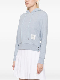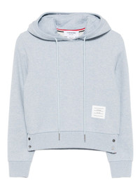 logo-patched hoodie Highlights - Light blue - Drawstring hood - Ribbed cuffs and hem Made in Italy Composition Cotton 100% SIZE & FIT Model measurements Height 5 ft 9 in(1.76 m) Bust/Chest 31.1 in(79 cm) Hips 35.03 in(89 cm) Waist 24.4 in(62 cm) FittingInformation Designed for a slim fit that sits just away from the body offering a close yet comfortable fit Made from a midweight non-stretch fabric, this piece offers minimal elasticity when worn