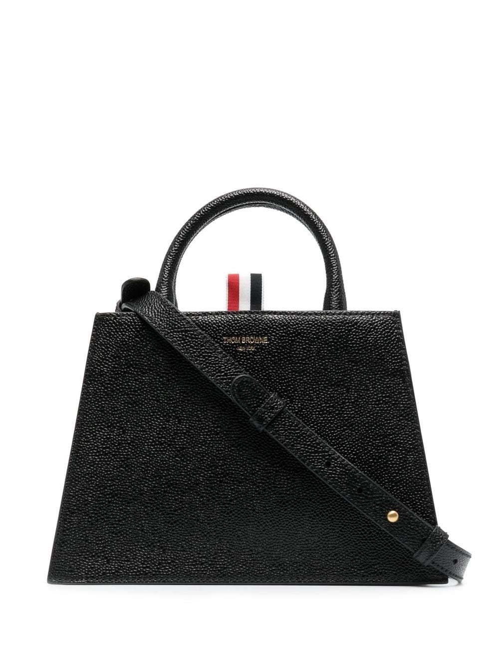 logo print grained leather tote bag Renowned for their use of high-quality materials and signature traits, this tote bag attests to Thom Browne's usual standards. Made from grainy calf leather, a signature grosgrain loop tab stands out against the black construction, alongside the lining in the label's signature stripe pattern. Made in Italy Composition Outer: Calf Leather 100% Lining: Polyester 100% SIZE & FIT Model measurements Height 6 ft 2 in(1.88 m) Bust/Chest 36.61 in(93 cm) Hips 35.82 in(91 cm) Waist 27.95 in(71 cm) Measurement DEPTH 3.93 in(10 cm) HANDLE 4.72 in(12 cm) HEIGHT 6.29 in(16 cm) STRAP 22.44 in(57 cm) WIDTH 9.84 in(25 cm)