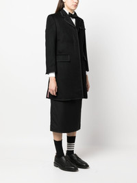 long grosgrain ribbon-trim coat core black cashmere grosgrain ribbon trim signature grosgrain loop tab notched lapels concealed front fastening long sleeves chest welt pocket two side flap pockets English rear vents Made in Italy Composition Lining: Cotton 100%, Cupro 100% Outer: Wool 100% SIZE & FIT Model measurements Height 5 ft 11 in(1.8 m) Bust/Chest 31.49 in(80 cm) Hips 36.22 in(92 cm) Waist 25.59 in(65 cm) FittingInformation This piece fits true to size. We recommend you get your regular size Cut for a slim fit Made with a mid-weight non-stretch fabric Washing instructions Dry Clean Only