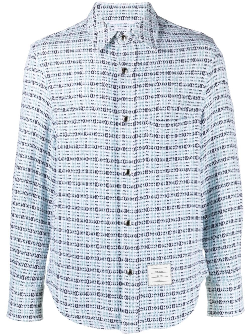 long-sleeve button-fastening shirt Instantly recognisable as Thom Browne by the signature grosgrain loop, this long-sleeve shirt is constructed from sophisticated materials and has a sleek silhouette that reflects the brand's tailored approach to garment construction. Highlights - Blue - Cotton - Classic collar - Long sleeves - Front button fastening Made in Italy Composition Outer: Cotton 100% SIZE & FIT Measurement CHEST 45.66 in(116 cm) SLEEVE LENGTH 29.92 in(76 cm) LENGTH 31.88 in(81 cm)