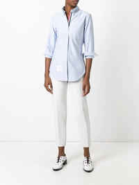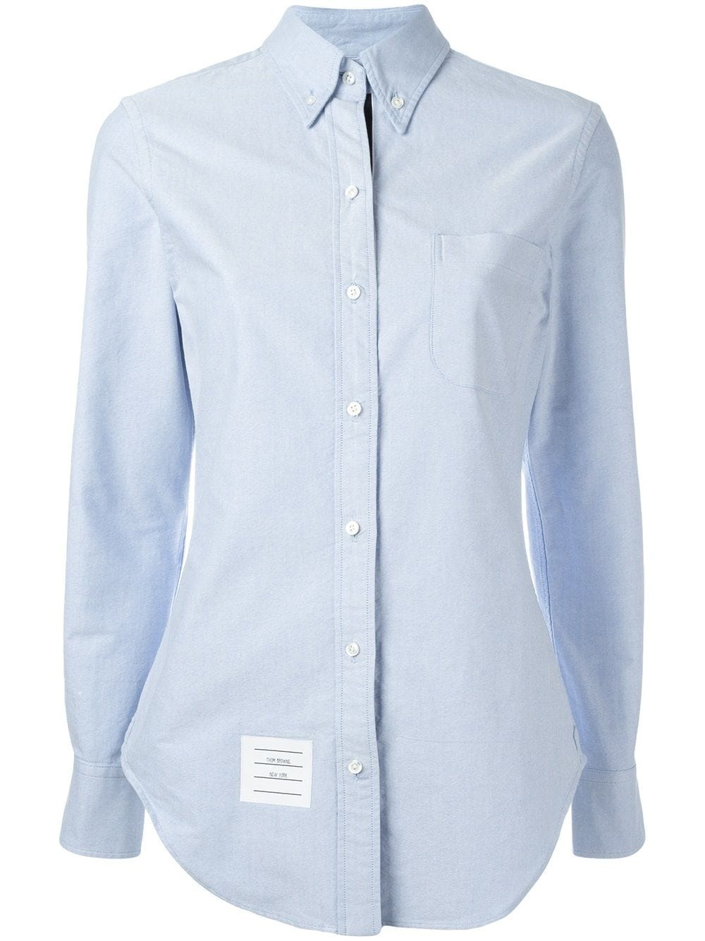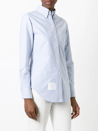 Long Sleeve Shirt Grosgrain Placket In Blue Oxford With a history in men’s formalwear, Thom Browne bring’s its tailoring expertise to the table when creating its women’s collection, focusing on premium materials and expertly cut shapes. This shirt is no exception, crafted from a soft cotton with a button down collar for a subtle nod to classic formal styles, and finished with the brand’s signature laundry tag. Made in Italy Composition Outer: Cotton 100% Washing instructions Dry Clean Only